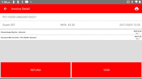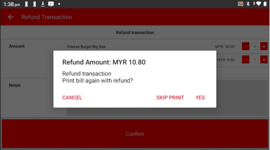 Once confirmed, the refunded bill will be highlighted in red, so you can easily spot it.
