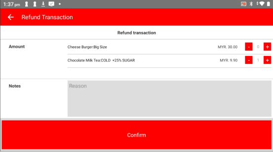Tap "Confirm" to submit the refund request.