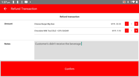 Select the specific item that want to refund from the bill.