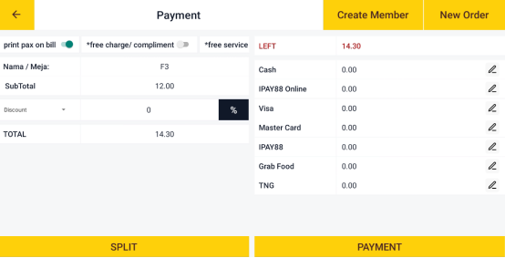 Input the customer name, the number of pax, and select the price type(e.g., Default Price, Grab Price and etc.) is optional before proceeding with the order.