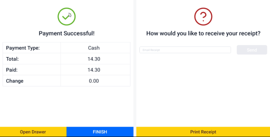 After completing the payment, the app will ask if you'd like to print a receipt. Choose Yes or No depending on the customer's preference.