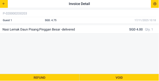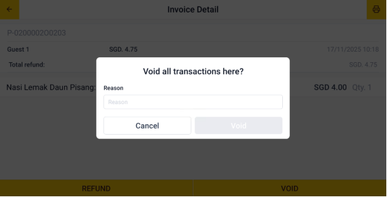 Tap "Void" to submit the refund request.